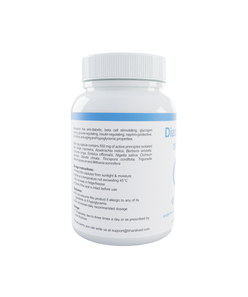 BharatVed Diabetame is an ayurvedic formulation which helps to rejuvenate the specific areas of the pancreas which are responsible for the secretion of insulin. Diabetame helps control blood sugar levels by coordinating glucose regulatory functions of the pancreas and liver without any adverse side effects.