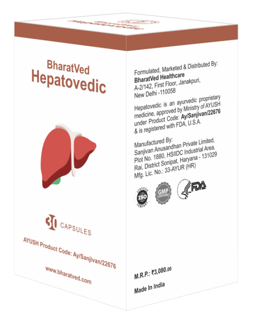 Hepatovedic is an ayurvedic formulation generally recommended for diseases of the liver, gallbladder, pancreas, gastrointestinal tract, etc. Every BharatVed OTC product is duly approved by the Ministry of AYUSH, proving its efficacy & showing that the product has gone through proper clinical trials. BharatVed Hepatovedic was approved for manufacturing under Drug Manufacturing Licence No. 33-Ayur-(HR) on 19/04/2021 under product code AY/Sanjivan/22676.
