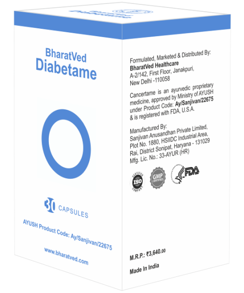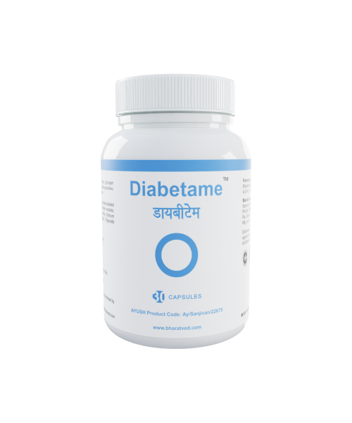 BharatVed Diabetame is an ayurvedic formulation which helps to rejuvenate the specific areas of the pancreas which are responsible for the secretion of insulin. Diabetame helps control blood sugar levels by coordinating glucose regulatory functions of the pancreas and liver without any adverse side effects.